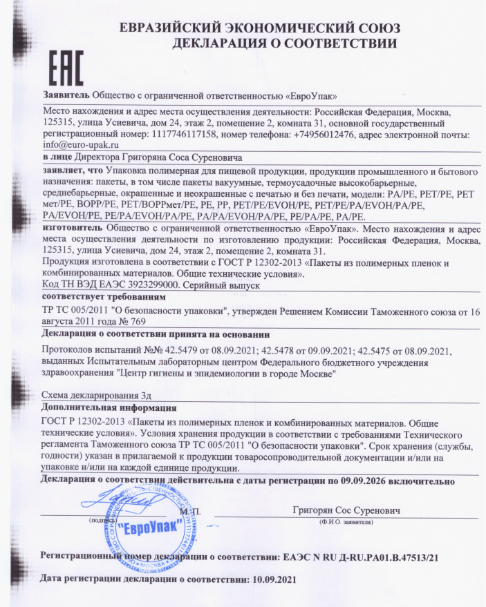 Вакуумный пакет 200х300 65мкм ПЭТ/ПЭ